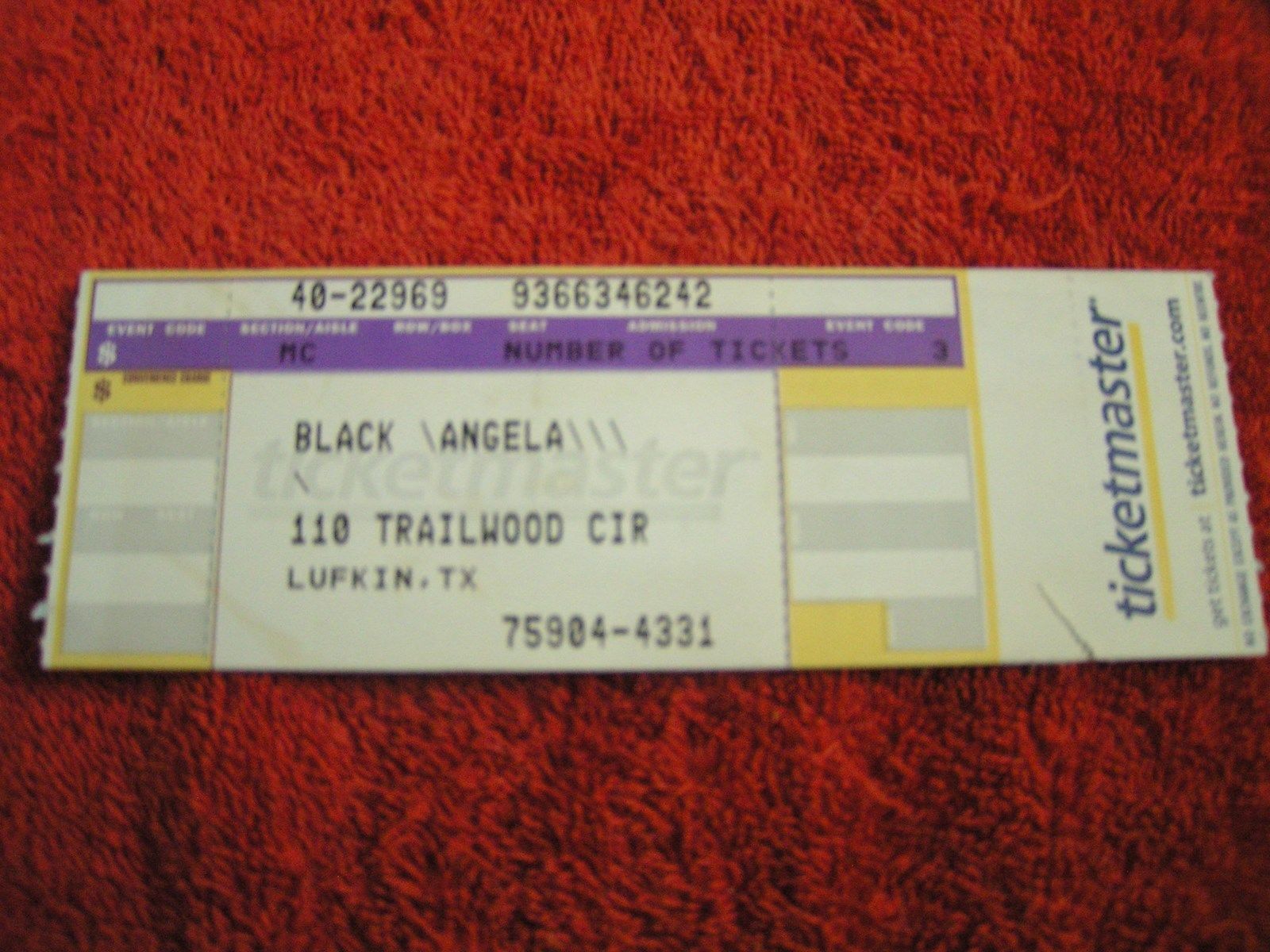 Black Angela 110 Trailwood Circle, Lufkin TX 75904-4331 Ticket Stub