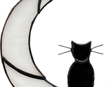 - Black Cat Decor on White Moon Stained Glass Window Hanging Suncatcher for Window