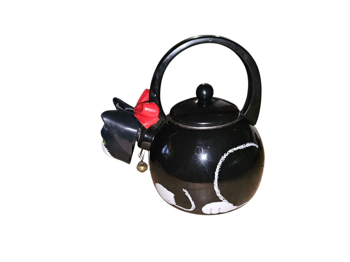 - Black Cat Teapot ~ Whistling Kitty Tea Kettle ~ Baked Enamel ~ Ancona ~ Vintage