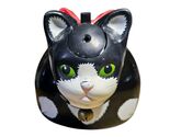 The Black Cat Teapot is a vintage tea kettle with a whistling kitty design, perfect for cat lovers and collectors alike. Made of metal with a baked enamel finish, this Ancona brand teapot has a capacity of 5 cups and stands at 10 inches tall and 10 inches wide. The unique black color and cat features make it a charming addition to any kitchen or home decor. This teapot is a functional and stylish piece for brewing tea and adding a touch of whimsy to your space.