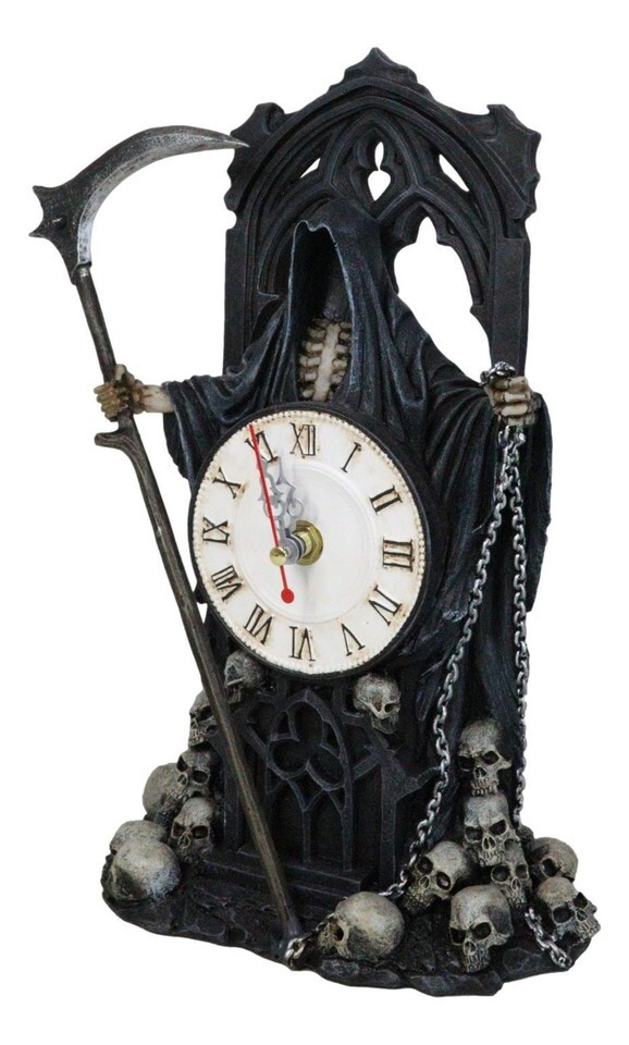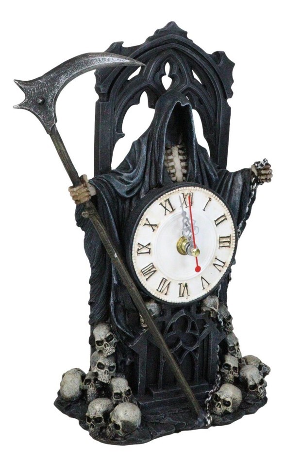 - Black Death Grim Reaper With Scythe Time Waits For No Man Table Clock Figurine
