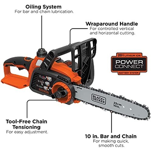 - BLACK+DECKER 20V MAX* Cordless Chainsaw Kit, 10-Inch (LCS1020)