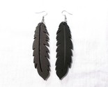 BLACK FEATHER CUT OUT SILHOUETTE WOOD WOODEN 4" DROP PAIR OF EARRINGS