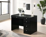 - Black Glam Makeup Vanity Table Glass Top 5 Drawers Crystal Knobs