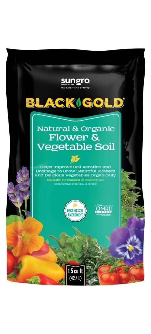 - Black Gold Organic Flower and Vegetable Garden Soil 1.5 cu ft