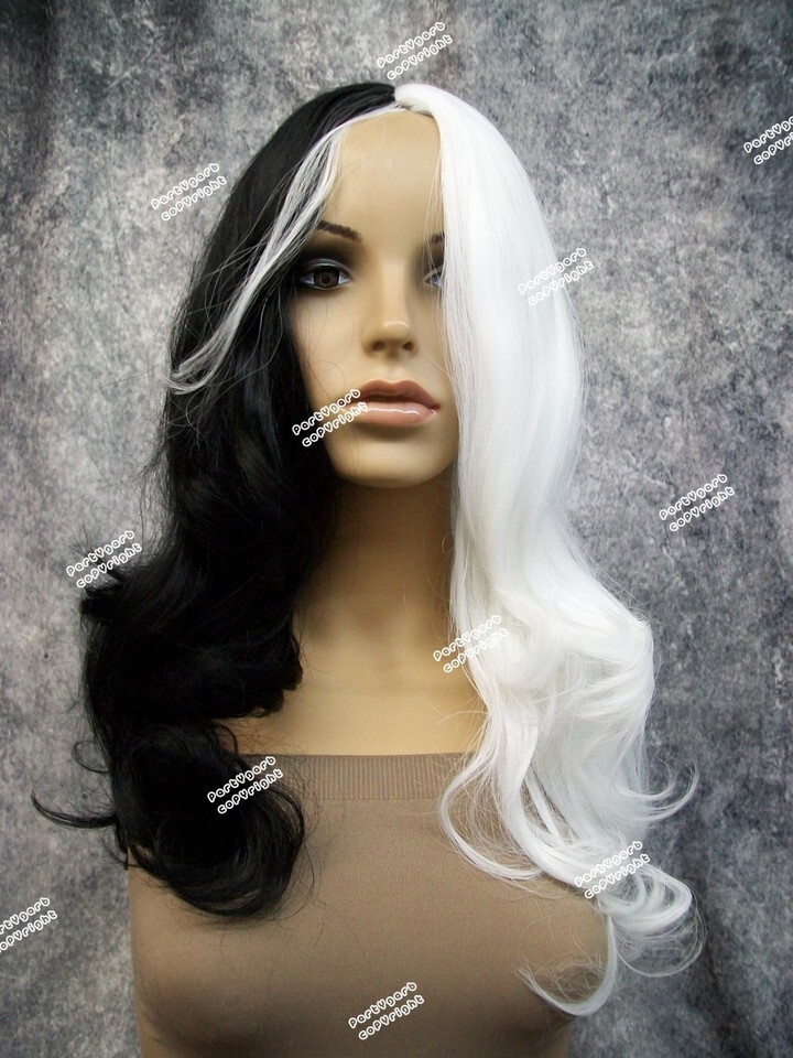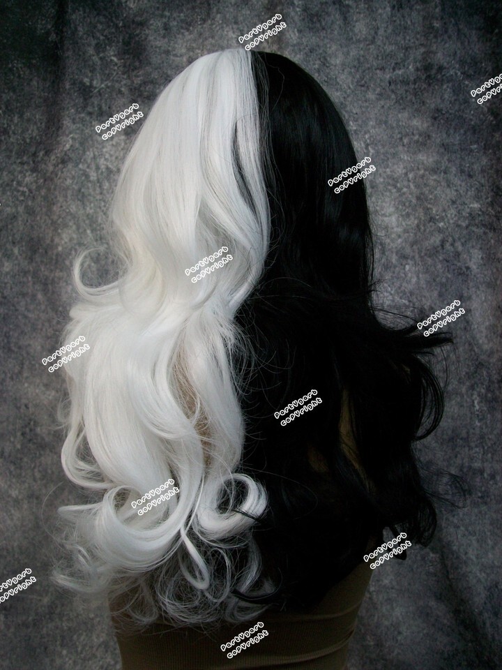 - Black Half White Villain Wig Evil Madame Wicked Cruella De Vil Dalmatian