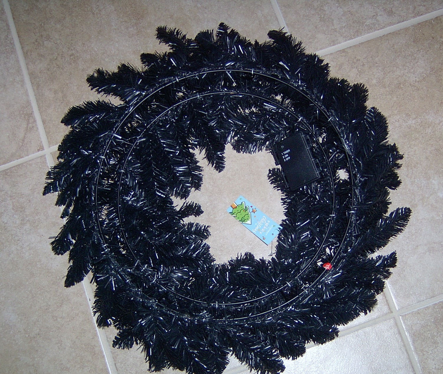 - Black Halloween Wreath Battery Operated Timer Purple Lights Open Box Never Used