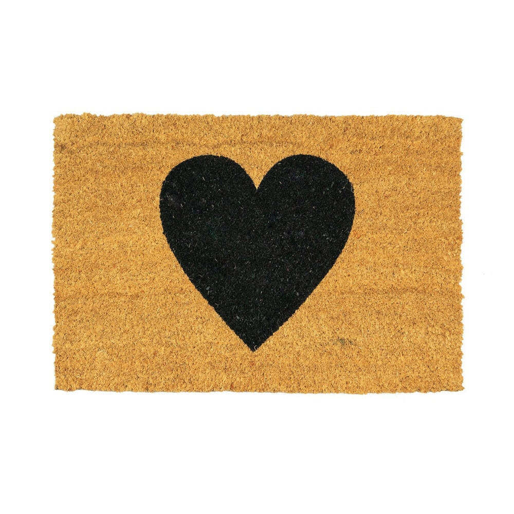 Black Heart Non-Slip Coir Door Mat - 60 x 40cm
