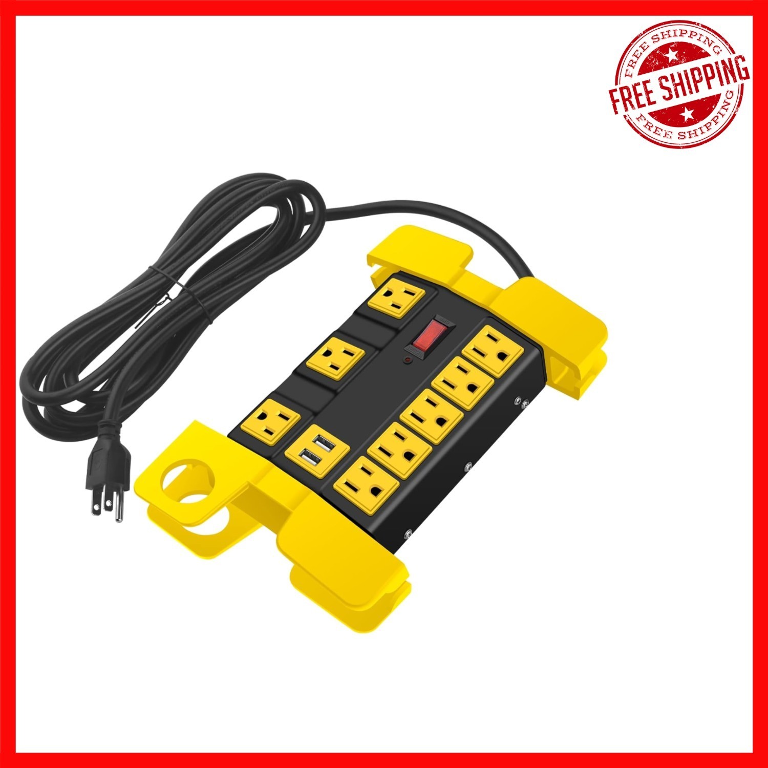 - Black Industrial Power Strip with 8 Outlets, USB & 2700 Joules Protection, 10FT