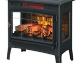 On a cold night, warm up to 1,000 square feet with this Black Infrared Quartz Electric Fireplace Stove Heater. The infrared quartz heat helps to maintain the natural humidity in the air, resulting in comfortable heat that doesn't dry out the room's air. This electric stove features a durable metal body construction with side viewing windows and an operable, beveled glass door. Patent pending 3D flame effect technology offers a layered flame effect to create a truly realistic fire experience with five adjustable brightness settings. The realistic flame effect with a glowing log and ember bed can be operated with or without heat, providing the ambiance of a gentle rolling fire all year long. This stove is easy to assemble and can be operated with the control panel on the unit or with the included remote.