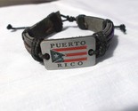- BLACK LEATHER PUERTO RICO METAL FLAG w TEXT BLACK and BROWN CORD ADJ BRACELET