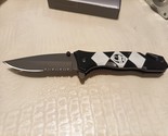 The Black Power Ranger Pocket Knife by WarTech is a modern folding knife with a stainless steel drop point blade and assisted opening mechanism. It features a liner lock and a seat belt cutter and glass breaker tool, making it a versatile and practical tool for everyday carry. The handle is made of aluminum and the compact design makes it convenient to carry in your pocket. The classic model in blue color is a collectible item for knife enthusiasts.