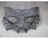 - Black Silver Cat Mask w/ Fangs Masquerade Ball Feline Femme Fatale Mean Kitty