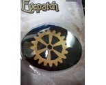 Black Steampunk Themed Cog Gear Printed Costume Eye Patch. Black Satiny like Material with Goldish Print. New in package. I can't see the back but it looks like it has elastic to go around the head, if not it has ties that tie around head. For Adult Use. Could be used as an accessory with many costumes.