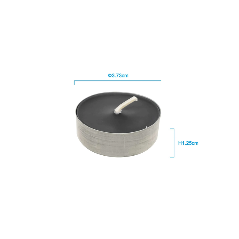 Mainstays Black Unscented Indoor/Outdoor Tealight Candles, 25 Count Create a beautiful atmosphere in your home Colored Unscented, 25-pack of tealight candles For indoor and outdoor decorative and lighting use Measure 1.46" in diameter