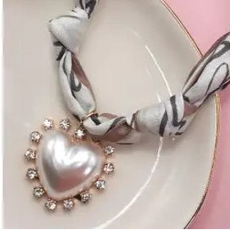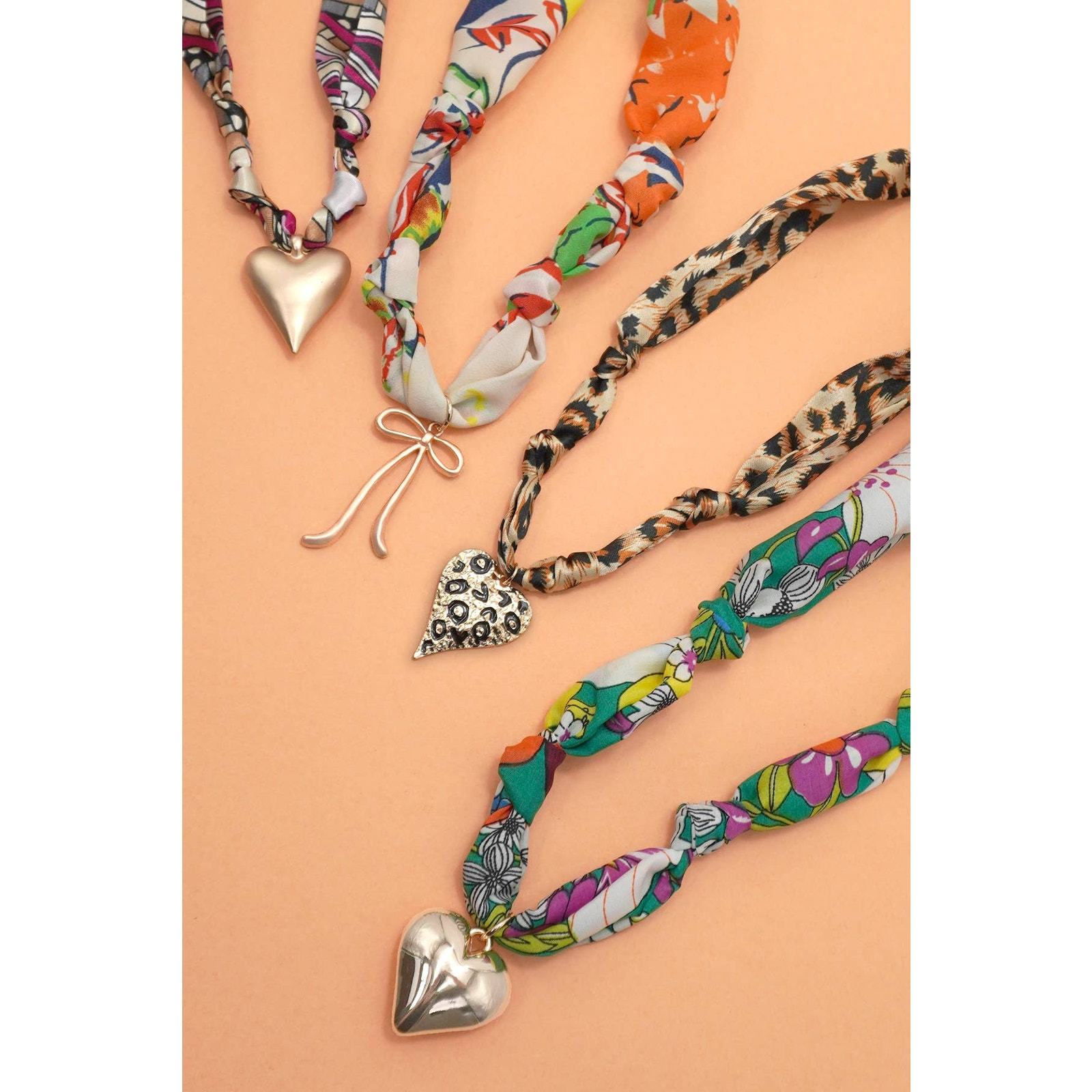 Handmade Scarf Necklace - Heart is a crafted with care, this soft fabric scarf doubles as a stylish necklace, featuring a delicate heart charm that adds a sweet, personal touch. Lightweight and versatile, it is perfect for layering.