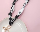 Black White Paisley Dotted Knotted Scarf Layering Necklace with Bow Charm