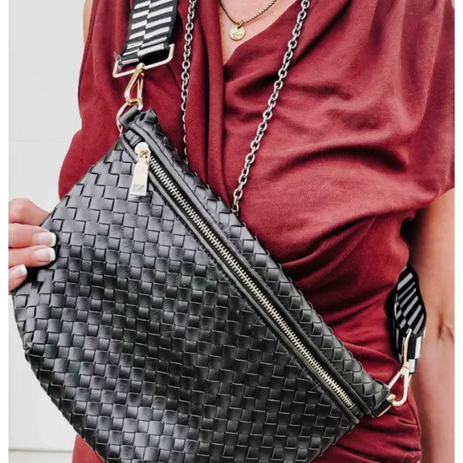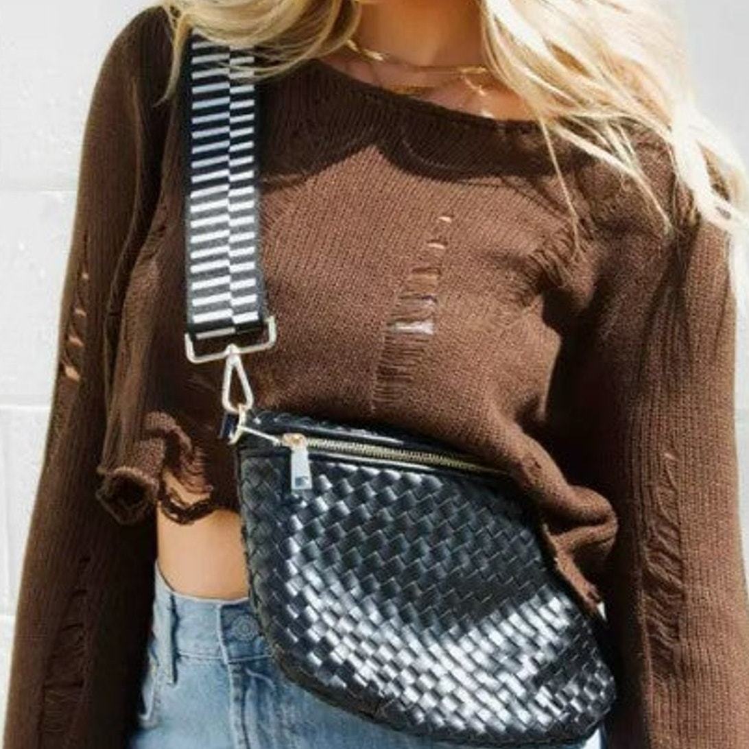 - Black Woven Crossbody Sling Bum Belt Bag
