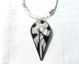 Black and White Petals Glass Pendant on 16" 4 Strand White Cord with Crystals