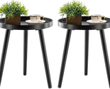 Black round Side Table Set of 2, Tray Nightstand Sofa Coffee End Table