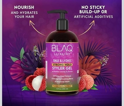 - Blaq Luxury Sage & Lychee Strong Hold Exotic Styler Gel -Nettle Leaves & Biotin