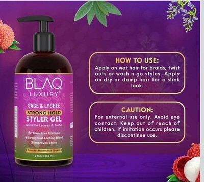 Blaq Luxury Sage Lychee Strong Hold Exotic Styler Gel -Nettle Leaves Biotin.
