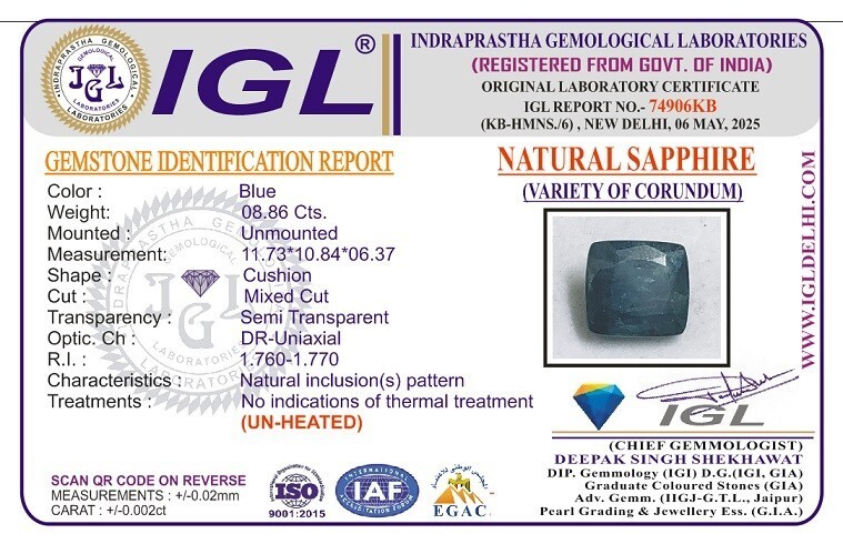- Blauer Saphir - 8.86 Karat - Ceylonesisch - Lab Zertifiziert - Nicht Erhitzt /