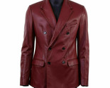 Blazer de cuero de oveja granate para hombre suave doble botonadura botón ele...