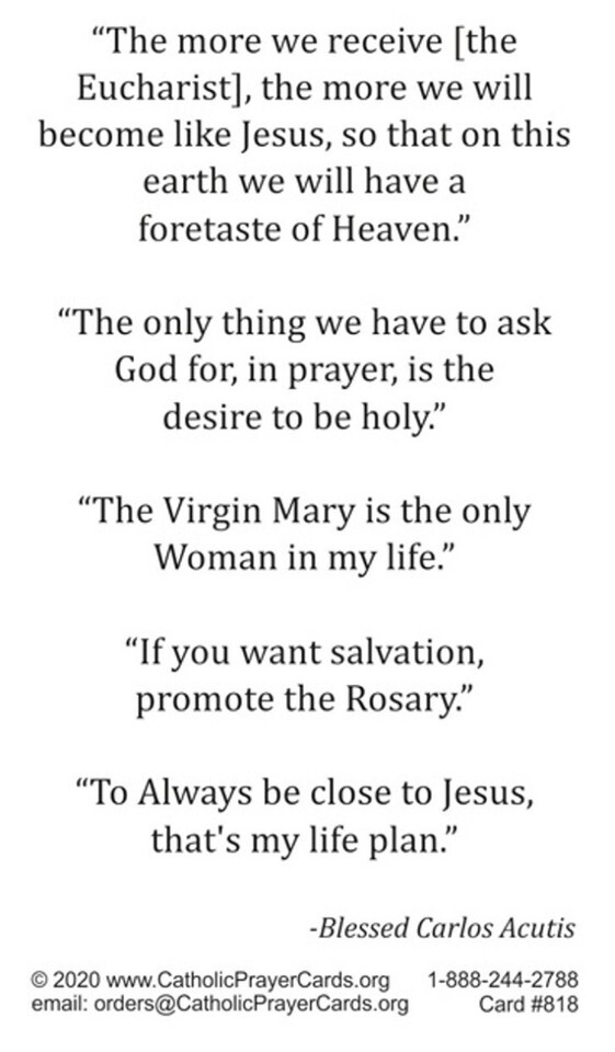 - Blessed Carlo Acutis,Apostle of the Eucharist Quotes Card, New #PC-104