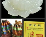 Blessed Carved White Jade Open Bud Lotus Flower Pendant W Certification and tibetan hand made gift bag