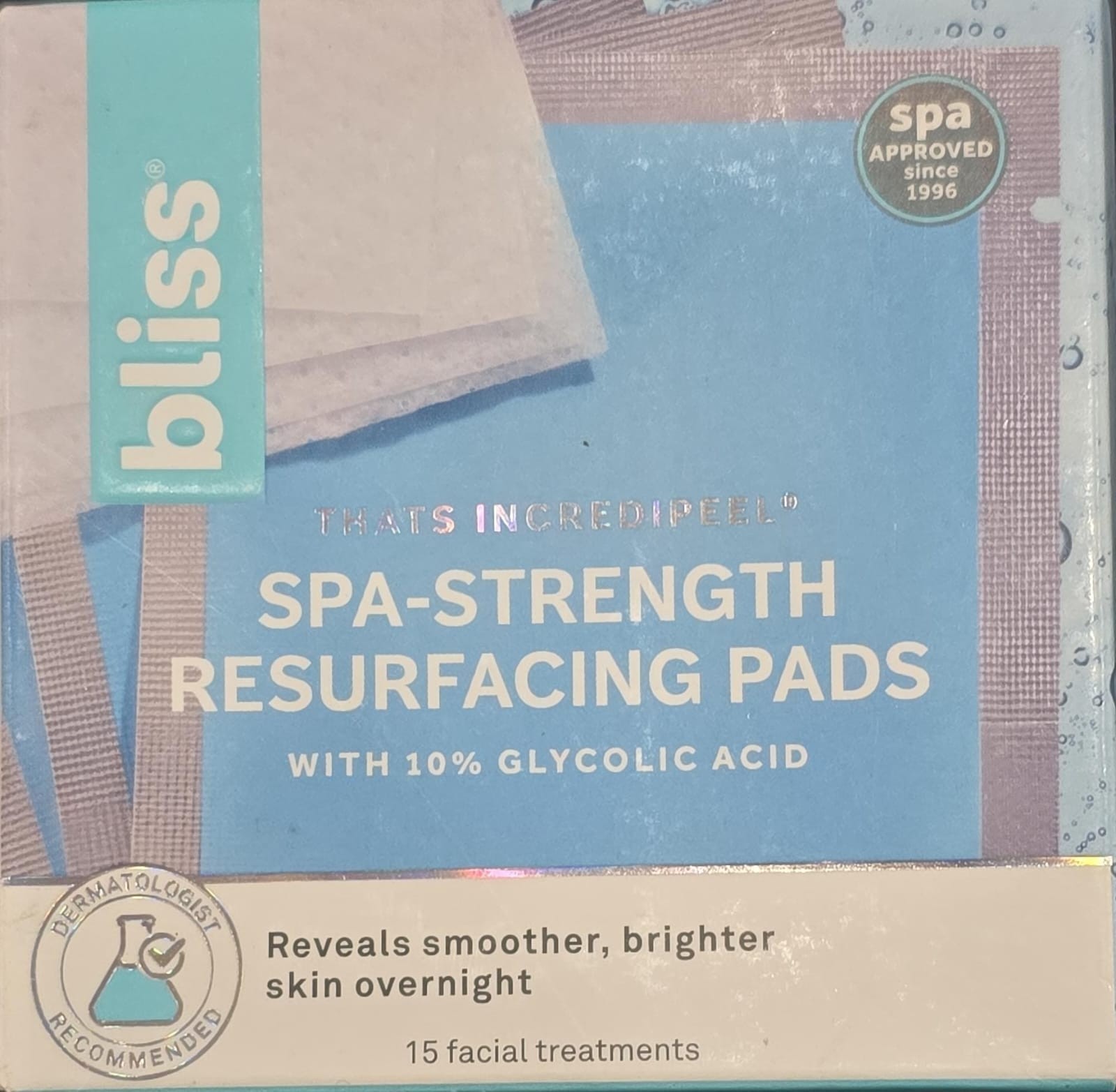 - Bliss That's Incredi-Peel Glycolic Resurfacing Facial Pads, 15 ct
