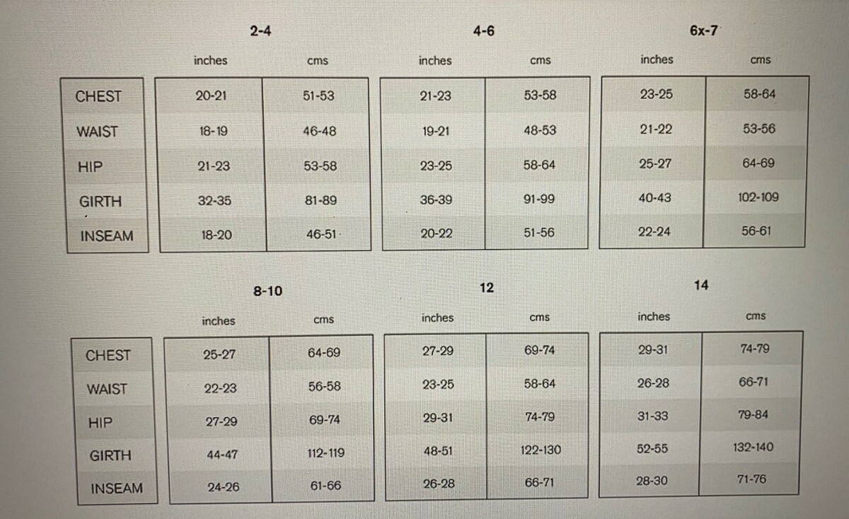 Please Note: Check Size Chart and measurements. Sizing can vary considerably between brands. Please check to make sure you are purchasing the correct size!