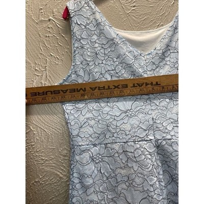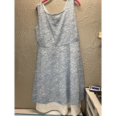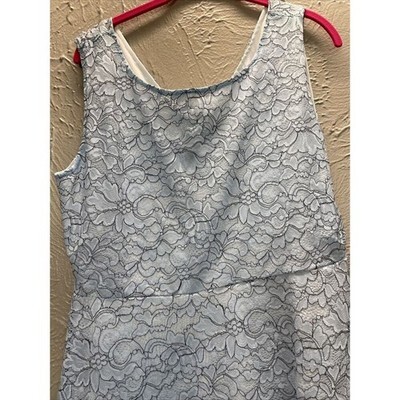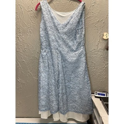 Dress Barn Blue A Line Flare Eyelet Sleeveless V Neck Crochet Overlay Size 14.