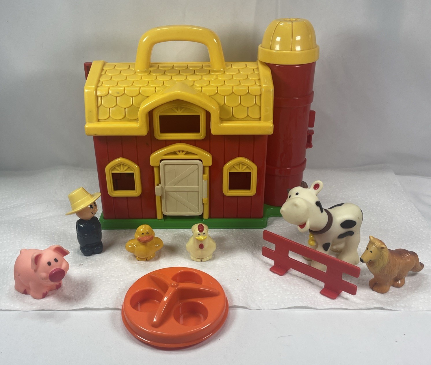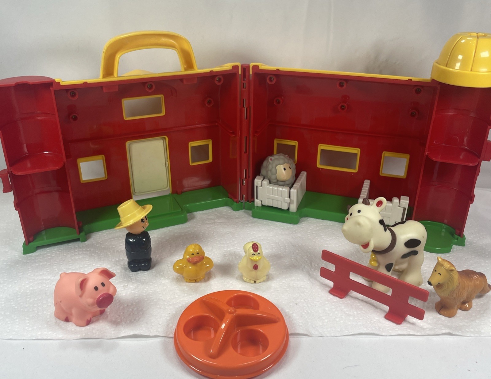 Pre-owned, barn is in great condition. The farmer has no arms but can still be used for play. ?
