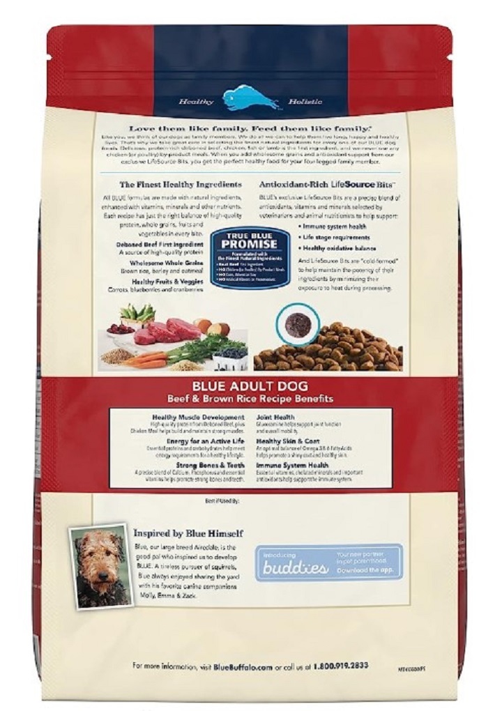 - Blue Buffalo 804084 Adult Dry Dog Food, Beef & Brown Rice Recipe - 34 lbs