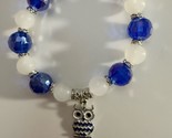 - Blue Faceted Bead Stretch Bracelet with White Gemstone Beads & Silver Owl Charm