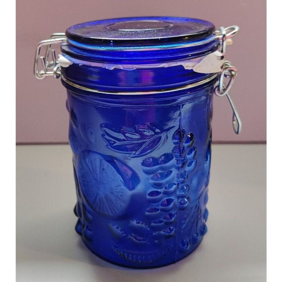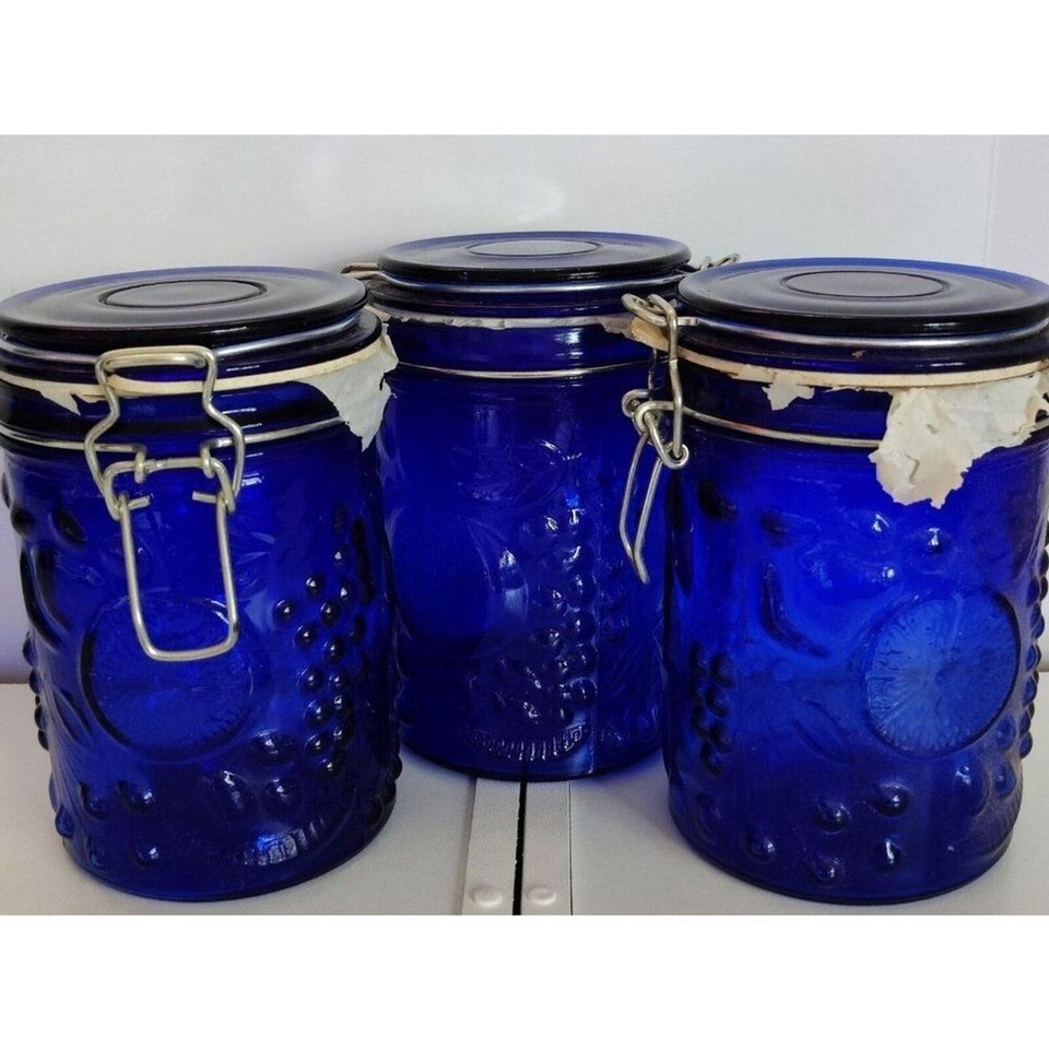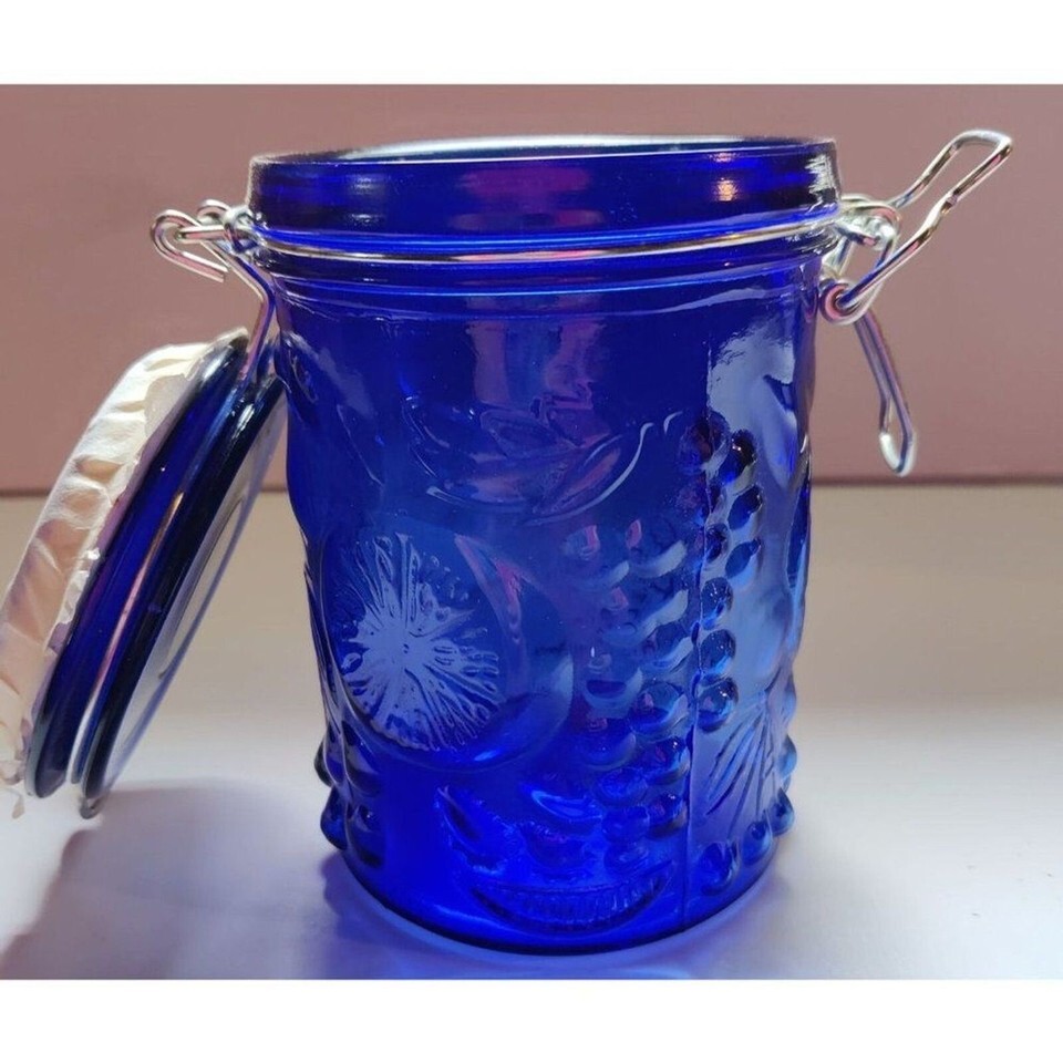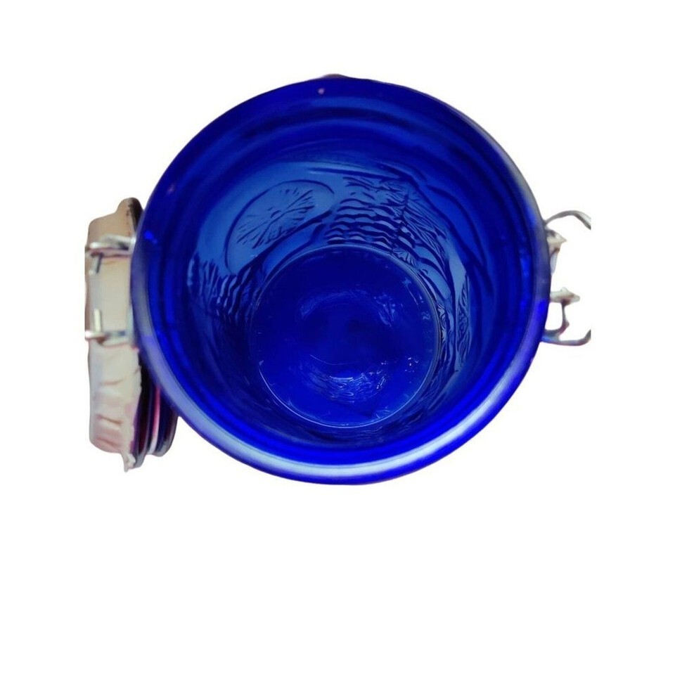 - Blue Glass Jars Set of 3 with Lids Food Storage Jar Round Storage 750 ML