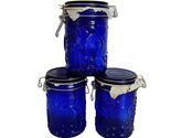 Blue Glass Canister Set of 3 Jars with Lids Food Storage Jar Round Storage 750 ML