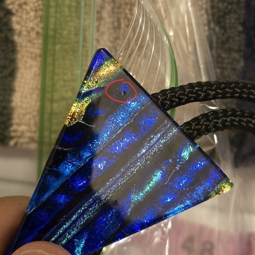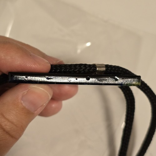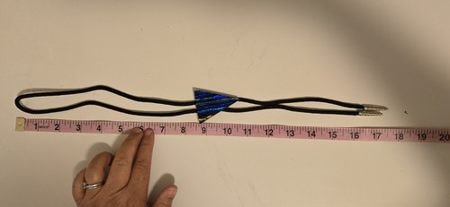 Blue Gold Black Iridescent Vintage Original Glass Western Bolo Triangle Tie