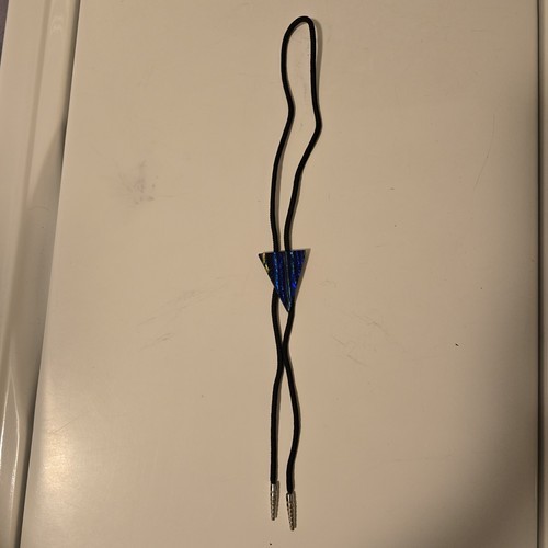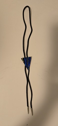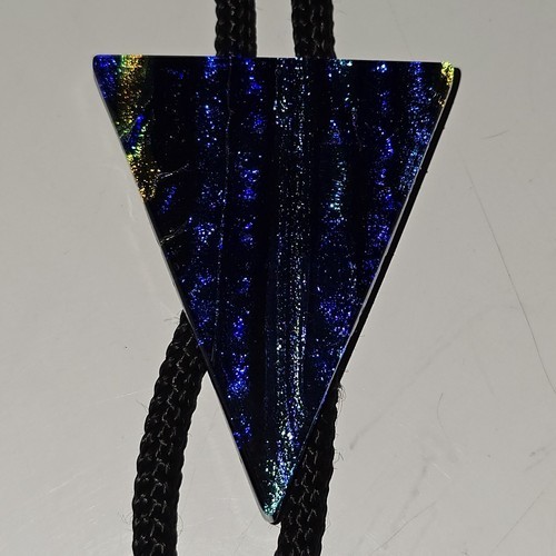 Blue Gold Black Iridescent Vintage Original Glass Western Bolo Tie - Triangle shape.