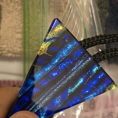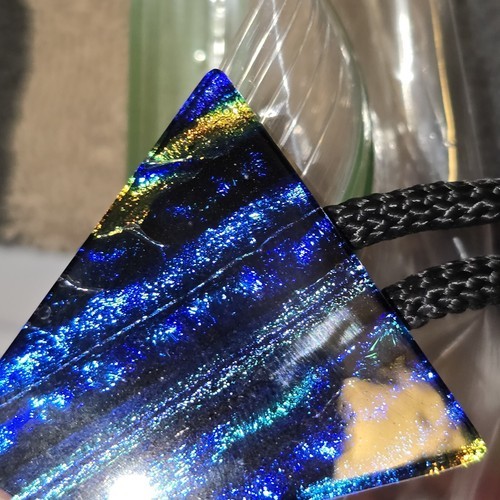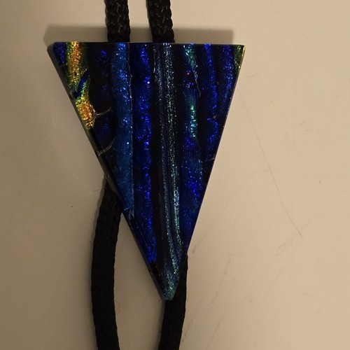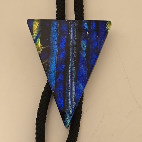 - Blue Gold Black Iridescent Vintage Original Glass Western Bolo Triangle Tie
