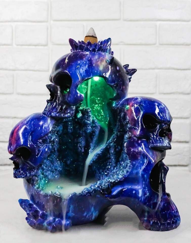 - Blue Gothic 3 Ghastly Skulls LED Death Mountain Cavern Backflow Incense Burner