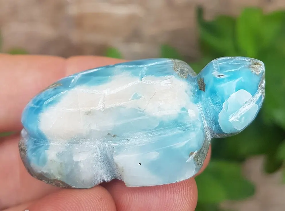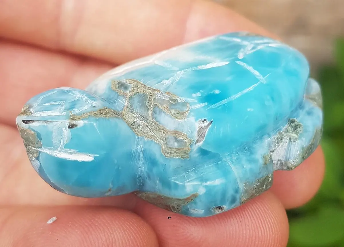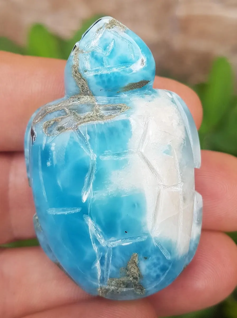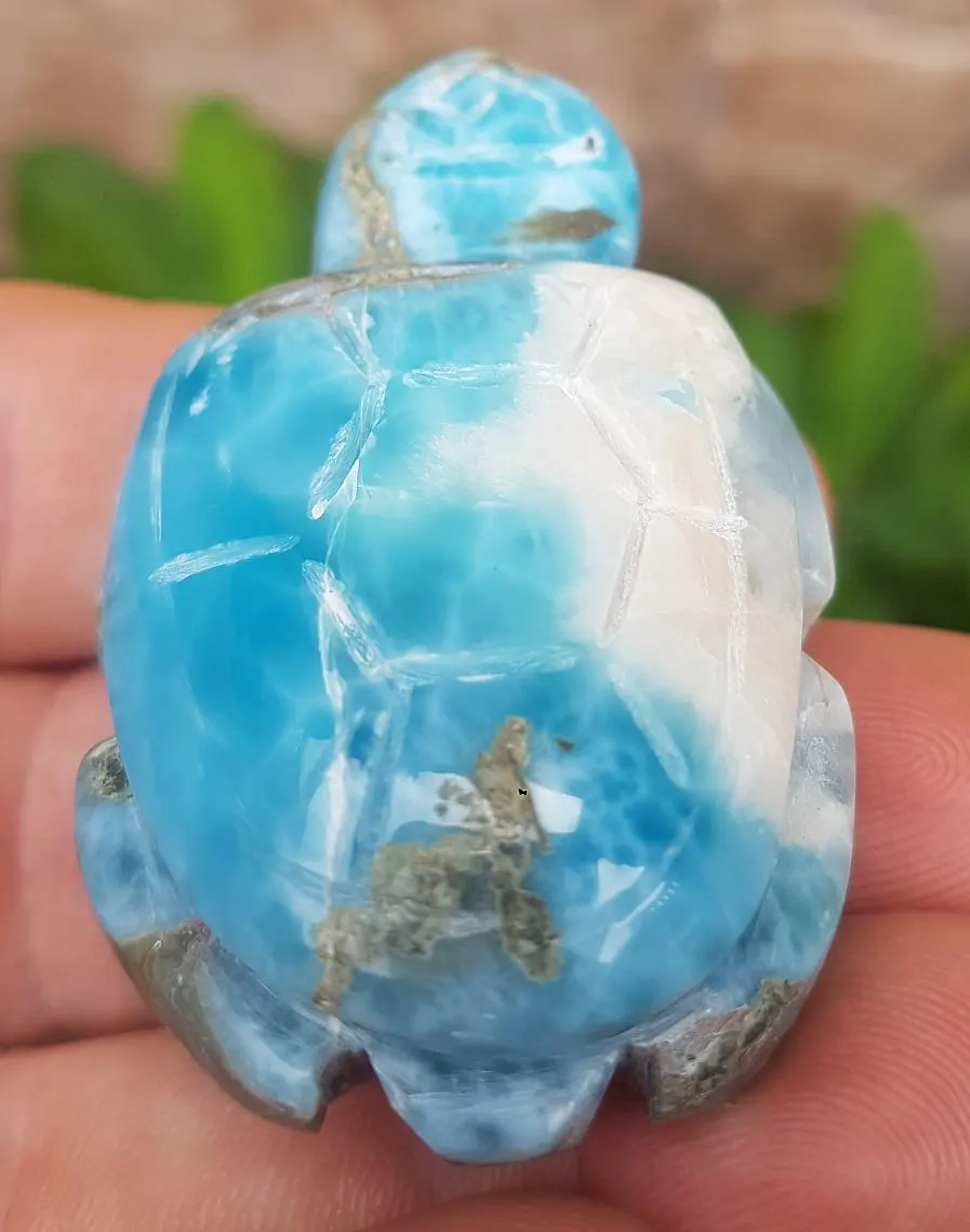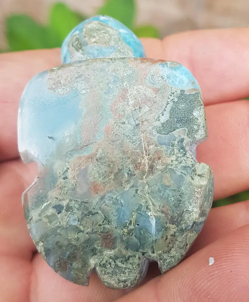 - Blue LARIMAR handcarved Gemstone TURTLE for decoration 68 grams (cj-21)