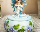 Blue Lily Flora Fairy Garden Fae Small Round Trinket Jewelry Box Figurine 3.25"H