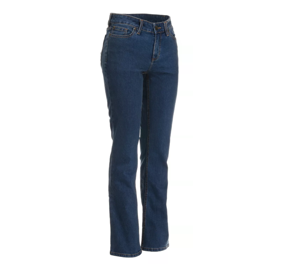 Stay comfortable on the job with these Blue Mountain Women's Straight Leg 5-Pocket Jeans. Made of 13% rayon, 1% spandex, 75% cotton and 11% polyester for extreme durability, these premium quality jeans also have 5 thread safety stitch at the side seams for added strength making them great for work use. 5/8 double rolled hems.Garment is not flame-resistant and is not intended for use while welding.