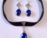 - Blue crystal black velvet Choker jewelry set Royal blue set black velvet Choker