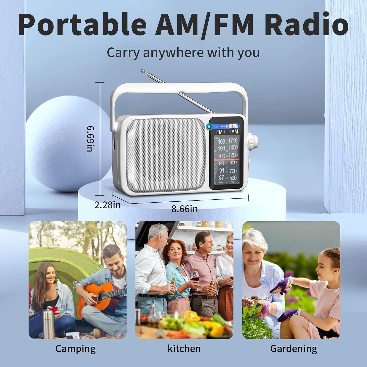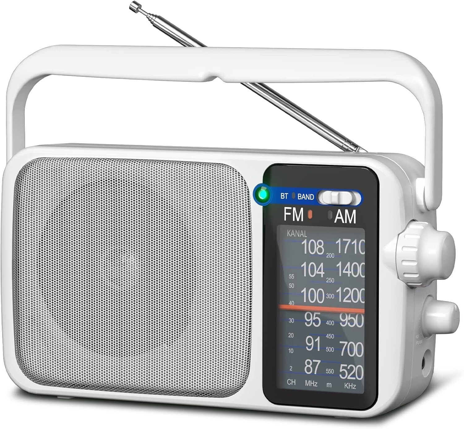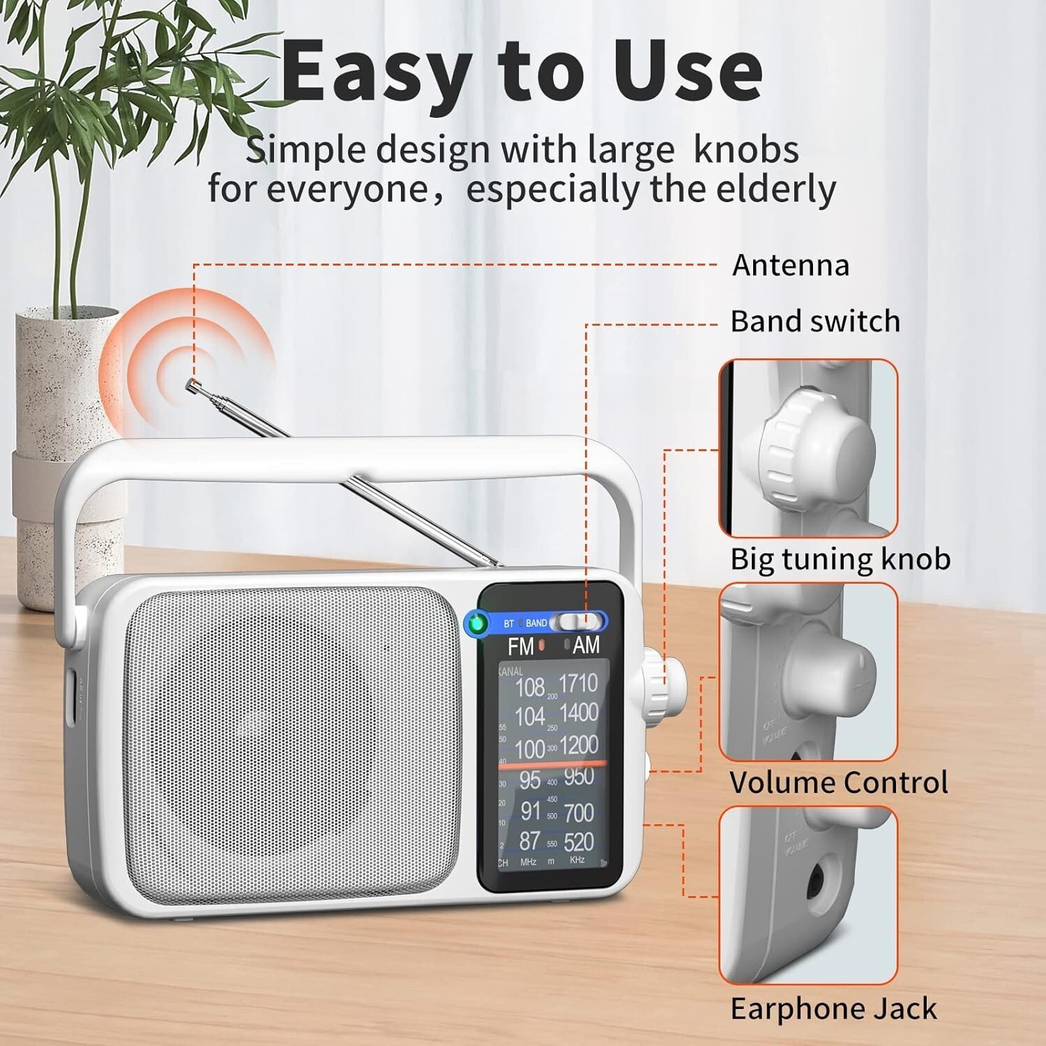 - Bluetooth Portable AM/FM Radio with Large Dial & Headphone Jack - Perfect Gift