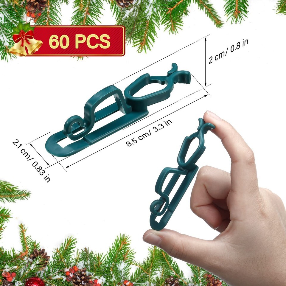 What you get: you'll get a pack of 60 Christmas light clips, enough quantity to serve as nice lamp holders for Christmas outdoor lighting decoration