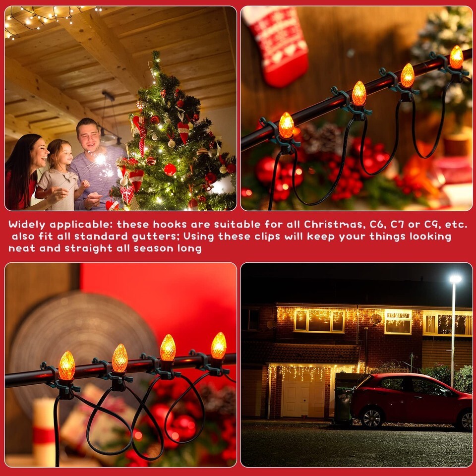 Widely applicable: these light hooks are suitable for all Christmas lights, C6, C7 or C9, mini lights, mini icicle lights, etc., also fit all standard gutters; Using these light clips will keep your lights looking neat and straight all season long