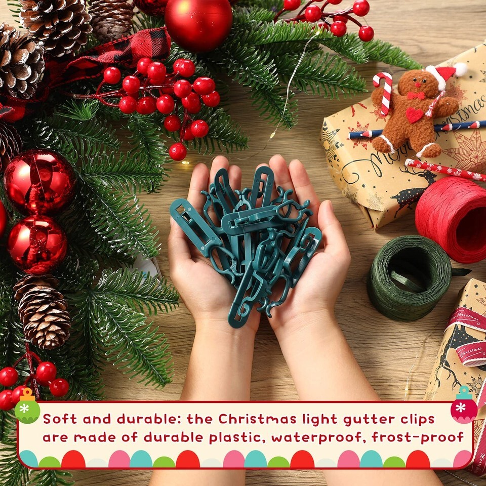 Soft material: the Christmas light gutter clips are made of plastic, waterproof, frost-proof; These outdoor Christmas light hooks are designed to be maneuvered underneath clipped into gutters; They are also flexible enough to be where they should be without being broken
